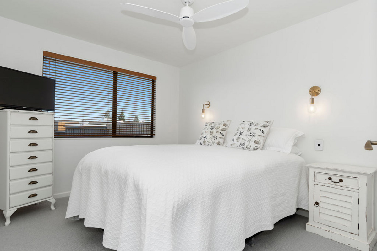 Bathed in all day sun, the emphasis is on entertaining here. The two bedrooms and two bathrooms (main with ensuite) are at the rear of the property, leaving the front to feature the gourmet kitchen and sunny dining and lounge room. Plenty of BBQ’s will be had while enjoying views of Mauao and the nearby shopping precinct from the generous decking off the living.